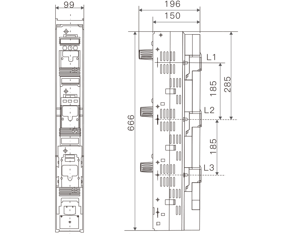 • LMHR系列熔斷器式隔離開關(條形)首創電流互感器與熔斷器開關一體化,適用于額定電流160A-630A,額定頻率50/60HZ。該系列產品模塊化,體積小,使用安全可靠,應用在低壓配電柜中有極高的裝容密度,顯示出很高的經濟性、安全性和應變性,不僅具有開關、保護功能,還可以擴展其他功能,不單純是一種開關形式,更重要的是它是一種完整的智能化系統,廣泛應用于電纜分支箱、箱式變電站、工廠、小區等,是未來配電領域的一個趨勢。